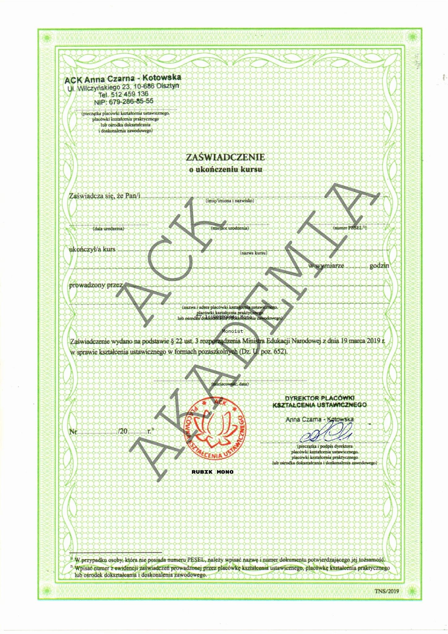 W przypadku zakupu kolejnego szkolenia obowiązuje ponowna opłata za dokumenty.